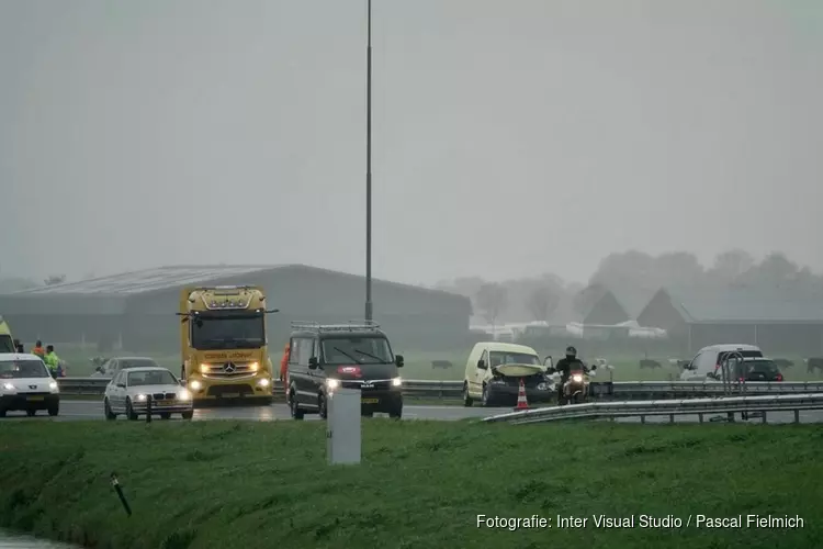 Het verkeer ondervindt hinder van het ongeluk: er is slechts één rijbaan open en dat zorgt voor flink wat vertraging.